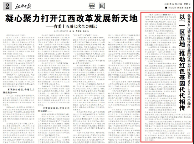 基于全面深入的分析,报告进口红色基因传承的核心诉求,从“本源”“魂脉”“后继有人”“有效利用”“广泛弘扬” 五大维度,提出五大发展建议,为江西红色基因传承先行区建设绘制清晰路径,助力江西打造红色传承新高地。