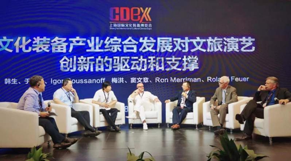 国际文化装备产业生态创新大会特设“文化装备产业综合发展对文旅演艺创新的驱动和支撑”圆桌论坛环节,窦文章教授与于建平、Igor Roussanoff、梅洪、RonMerriman、Roland Feuer等专家一起交流发言,围绕文化艺术的独创性问题、艺术家在文化演艺视野中扮演的角色、高科技技术在文旅产品中的转化、创意理念如何通过高技术实现、艺术与技术的关系等问题,探索文化装备发展给整个文旅产业带来的新突破、新发展。
