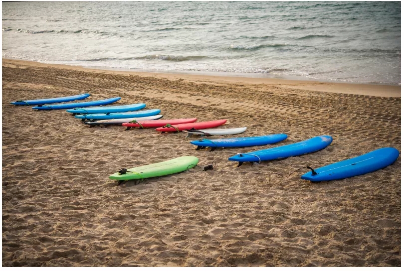 冲浪作为新兴运动离不开传播和营销,明亮的海、年轻的客群无疑是冲浪最具吸引力的先天优势。后海村的俱乐部及当地旅游主体,十分擅长利用这种视觉冲击进行宣传,青春活力的生活、绚丽多彩的冲浪板、纯净明媚的海景,共同织就了冲浪生活的美好图景,引人向往。