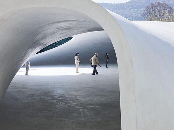 不同于地中美术馆的后现代和阳刚,由建筑师西泽立卫和艺术家内藤礼合作设计的丰岛美术馆显得柔美而亲近自然。