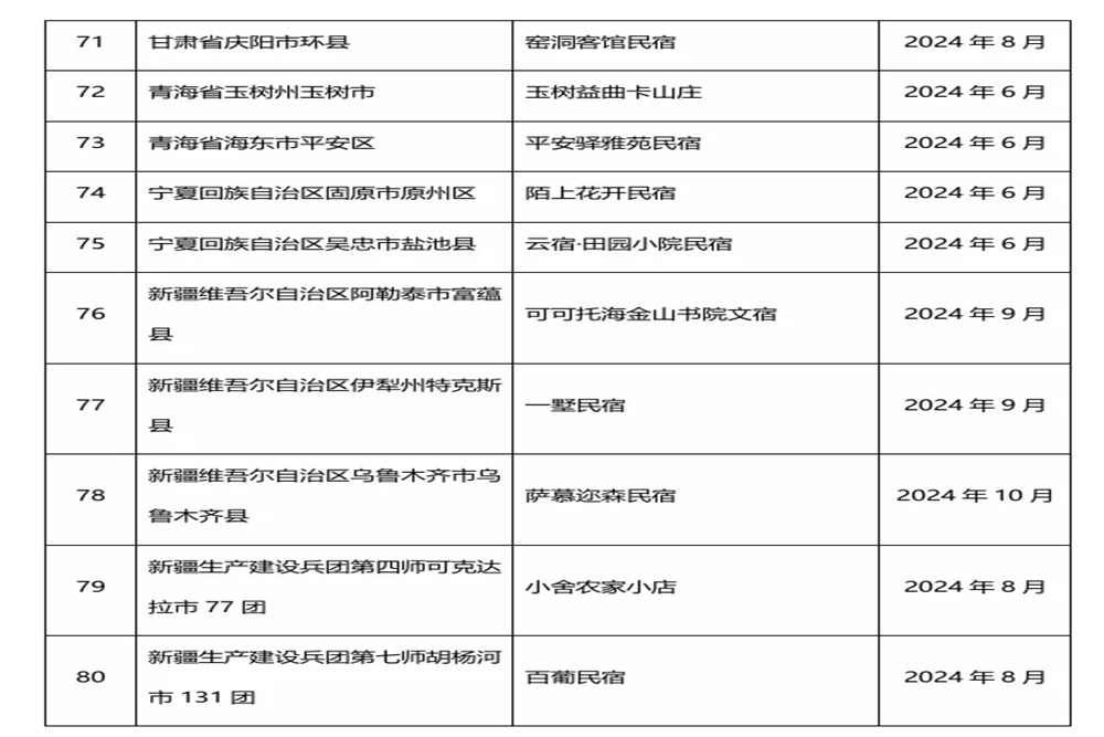 2024年全国甲级、乙级旅游民宿评定结果公示